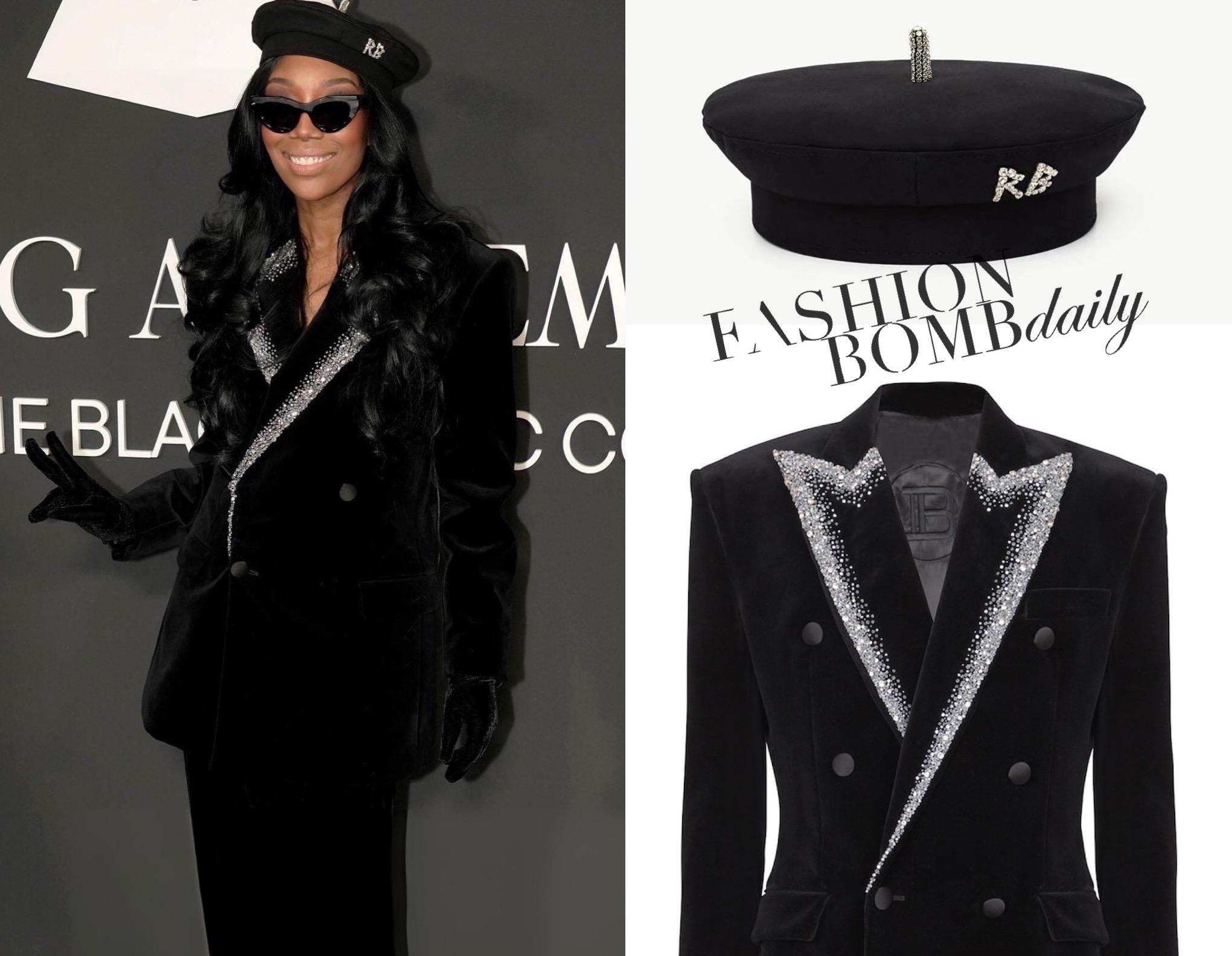 7 Brandy In A Black Velvet Crystal Embellished Balmain Blazer And Beret At The Recording Academy Honors