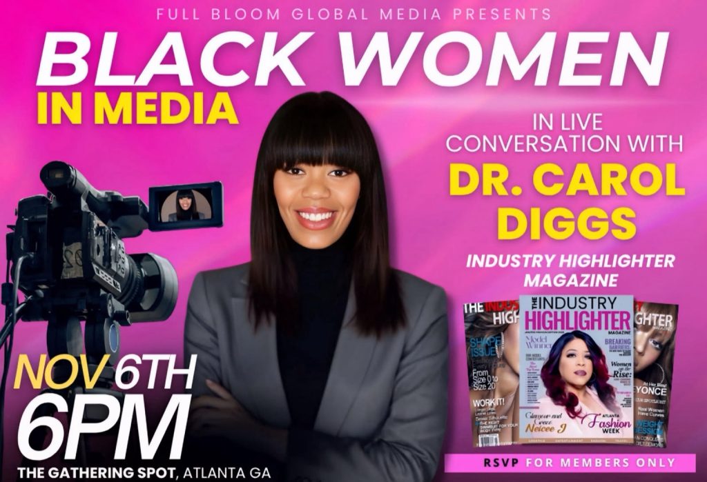 Full Bloom Global Media is set to host its highly anticipated “Black Women in Media” Live Conversation Series at The Gathering Spot in Atlanta, Georgia — and among the powerful lineup of industry leaders is Dr. Carol Diggs, CEO of Sapphire Entertainment & Media Management and founder of The Industry Highlighter Magazine.