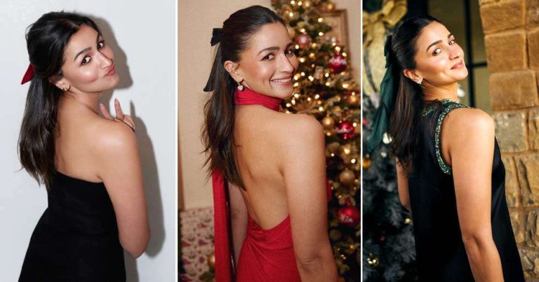 Bows have surged in popularity because they strike a balance between whimsy and high fashion. Designers and stylists are elevating a simple silhouette into something romantic and more expressive. Alia Bhatt recently shared her love for bows. She shared her Christmas looks in stylish bows of varied colours – of red, green and black. She flaunted both, oversized and dramatic and dainty and minimalist looking bows. Like, she paired a dainty red bow with her little black dress. A fashion moment right there! Her other outfits include pairing a black bow with a red fitted gown. She also paired a black and green silk dress with a dark green bow of the same material. Not only Alia, Sonam Kapoor Ahuja, Deepika Padukone and Khushi Kapoor have also paired a bow with a perfect dress before.
