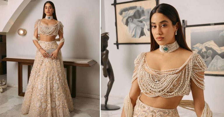 Janhvi Kapoor looked nothing short of breathtaking as she turned muse for designer Manish Malhotra, donning a lehenga from his INAYA Collection 2025/26. The ethereal ensemble, titled “The Pearl Story,” featured intricate hand embroidery adorned with pearls, crystals, and fine thread-work, creating a timeless and regal silhouette.