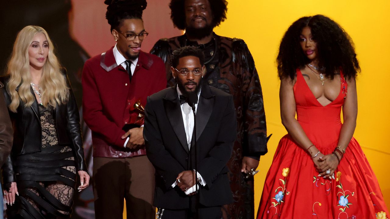 Lamar and SZA accepted the award together, joined onstage by a group that included GNX producers Sounwave and Jack Antonoff, Kamasi Washington. Cher was alongside them after making a slip in presenting the category, announcing the winner as “Luther Grandoss” before correcting herself.