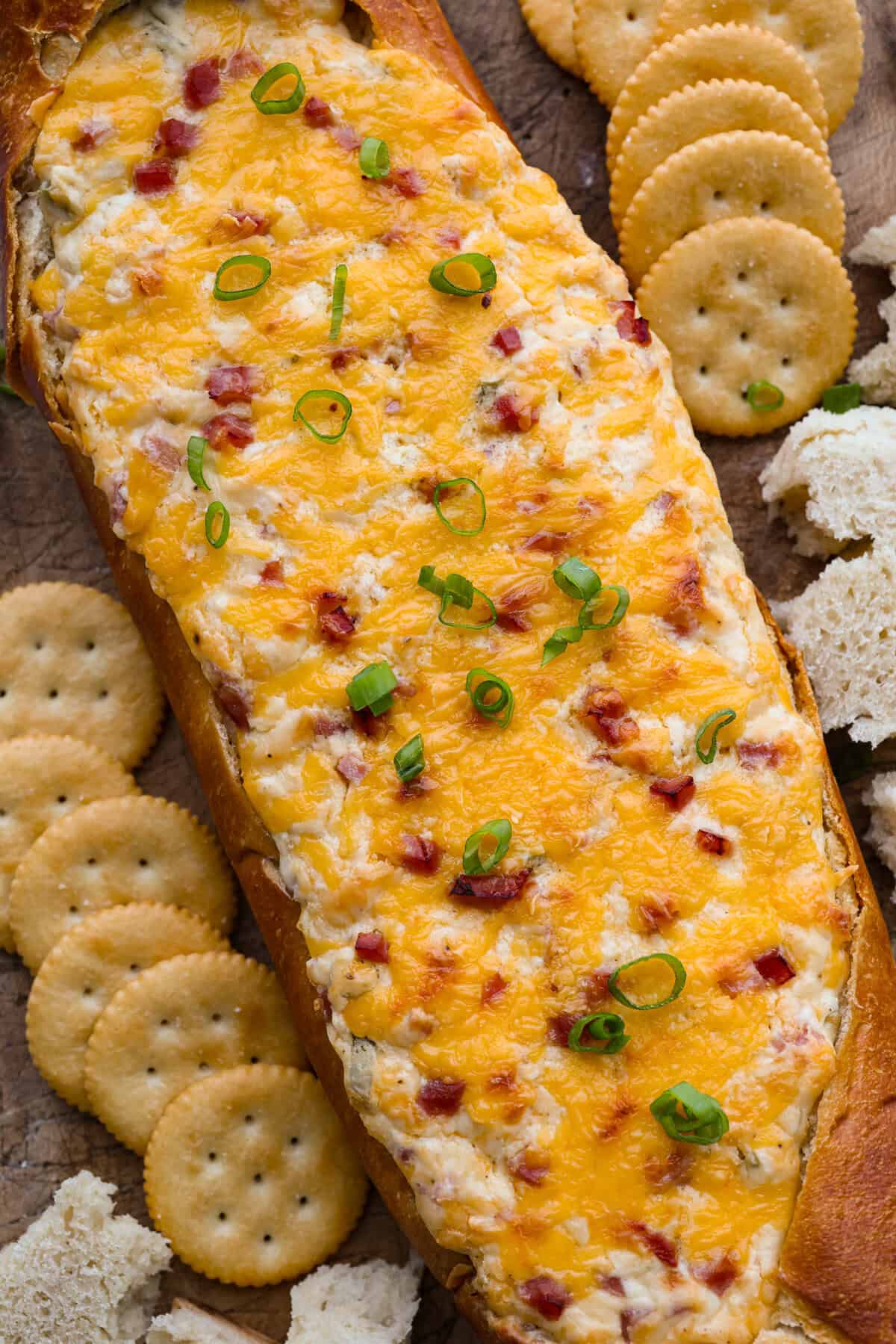 - Built-in bread bowl magic: Baking the dip right inside a crusty French loaf keeps everything warm, melty, and perfectly scoopable.