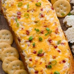 This Mississippi sin dip is pure comfort-food goodness. Creamy, cheesy, a little smoky, and baked into a loaf of French bread. It’s one of those dips everyone keeps going back for!