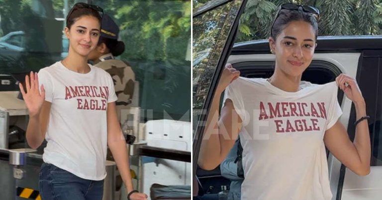 Ananya Panday once again proved that effortless style speaks the loudest. She reached Mumbai airport looking casually chic and refreshed. She ditched over-the-top glam and embraced a clean and minimal aesthetic. It felt both modern and relatable. She wore a crisp white top accentuated with the American Eagle logo in red. It added just the right pop of colour without overpowering the look. She paired it with classic blue jeans, which further elevated her style.
