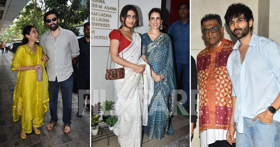 PHOTOS: Sara Ali Khan, Kartik Aaryan and More at Anurag Basu’s House for Saraswati Puja