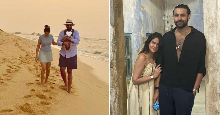 Varun-Lavanya strolled hand-in-hand on a golden beach at sunset. He cradled their baby gently. Footprints trailed behind and it all seemed perfectly adorable.