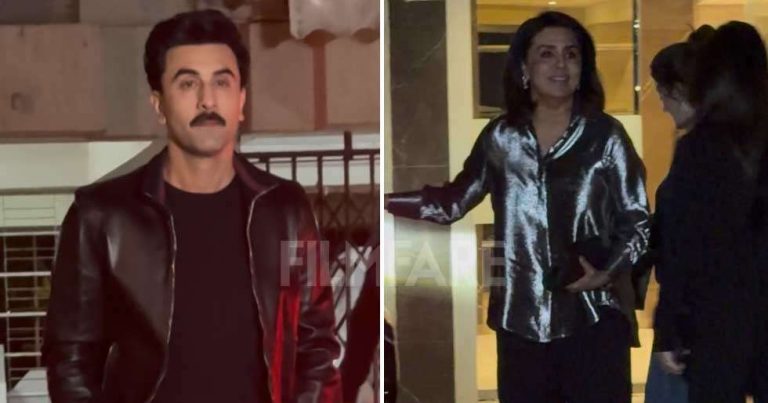 The Christmas celebrations have begun at the Bhatt-Kapoor residence. Ranbir Kapoor, Neetu Kapoor, Riddhima Kapoor Sahni and her daughter Samara were seen arriving at Alia Bhatt’s mother Soni Razdan’s residence. Ranbir opted for an all-black look and wore a shirt, paired with trousers and a stylish leather jacket. He posed for the paparazzi before entering the building. Neetu and Riddhima also graced the shutterbugs with their warm smiles.