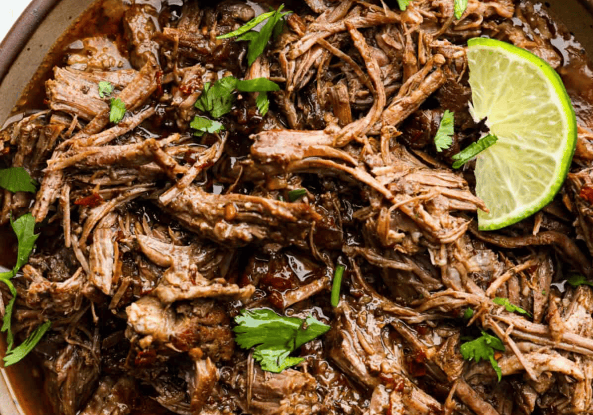 - Cook dinner and Shred: Cowl with a lid after which prepare dinner on LOW for 8-9 hours or HIGH for six hours. Shred the meat with two forks and serve in a tortilla. Garnish with contemporary cilantro, chopped crimson onion, and lime wedges.
