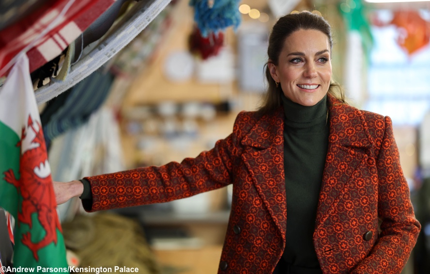 The Princess of Wales chose a blend of vintage and current pieces for today’s engagements spotlighting Welsh textiles.