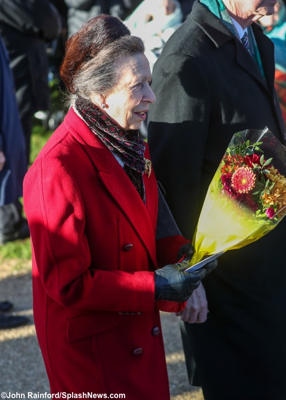 Princess Anne, with a bouquet she was given.