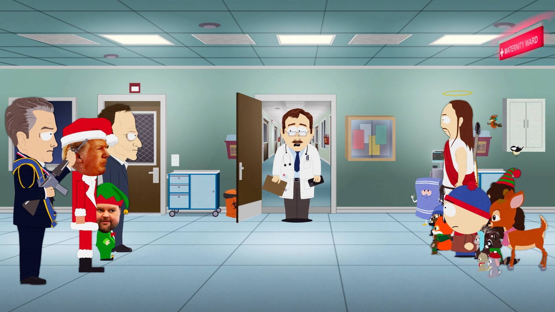 It all leads to a dramatic standoff at the hospital as Satan is due to give birth, with Trump, Vance, Jesus, Thiel, and Pete Hegseth staring down Stan and the Woodland Creatures. “All I know is I should help someone get their Christmas miracle,” Stan declares in an impassioned speech, compelling Jesus to switch sides.