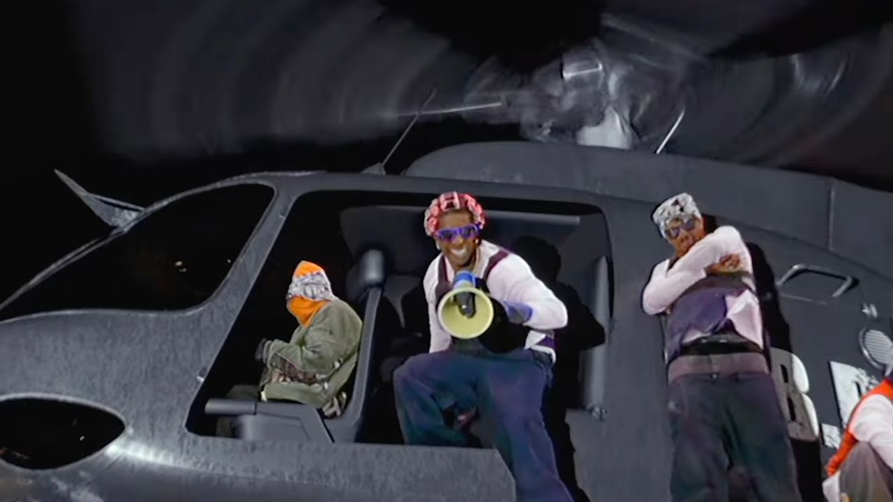 A$AP Rocky has unveiled yet another Don’t Be Dumb single ahead of the record’s release this Friday. “Helicopter$” is written and produced by Rocky and Kelvin Krash, with co-production from Soufien 3000. Rocky also directed its Playstation-coded throwback video alongside Dan Streit, conjuring a dystopian diorama of rooftop riots, cop-car collisions, robot wars, and swarming SWAT teams as Rocky weaves through the crowds and hangs off his helicopter overseeing the melee. Watch it go down below.